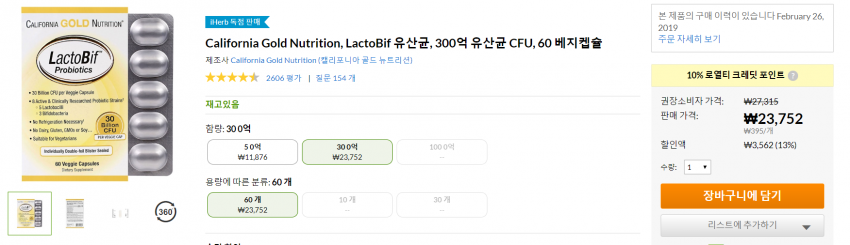 한포에 10억 , 프리바이오틱스 함유 , 로셀사의 코팅기술 등등 괜찮은편이다.