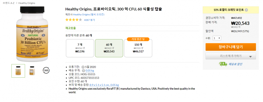 헬시오리진하고 균주규성은 비슷하나 어느균을 어느정도 넣었는지는 빠져있습니다. 가격은 비슷합니다. 한알 400원꼴